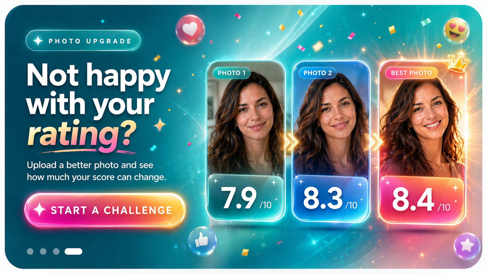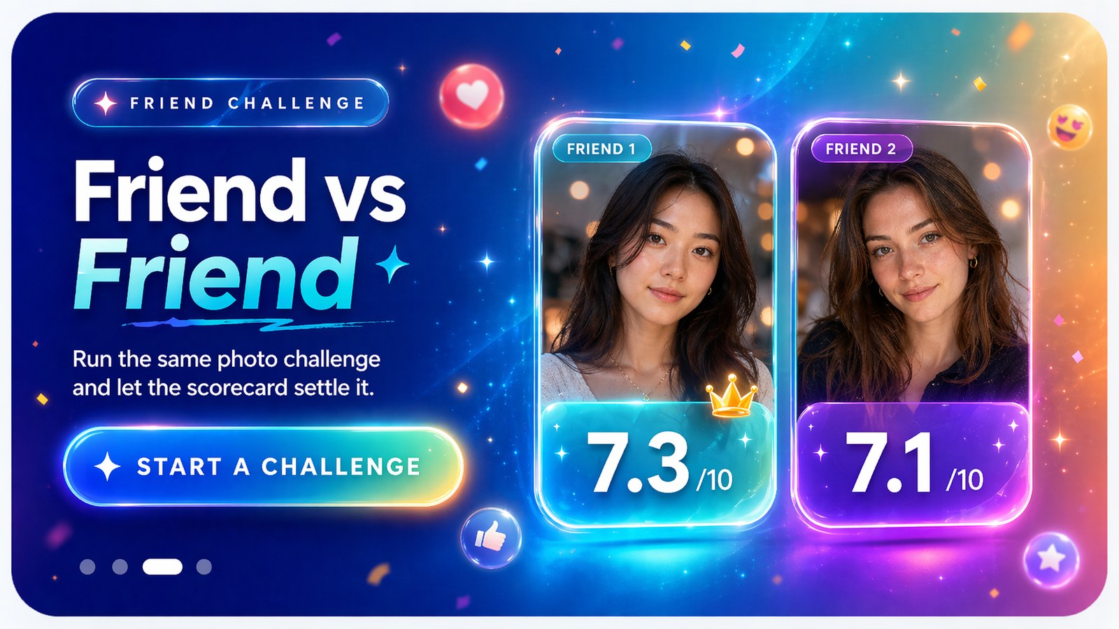 Upload a selfie, get your AI score, and see if your friends can beat it.